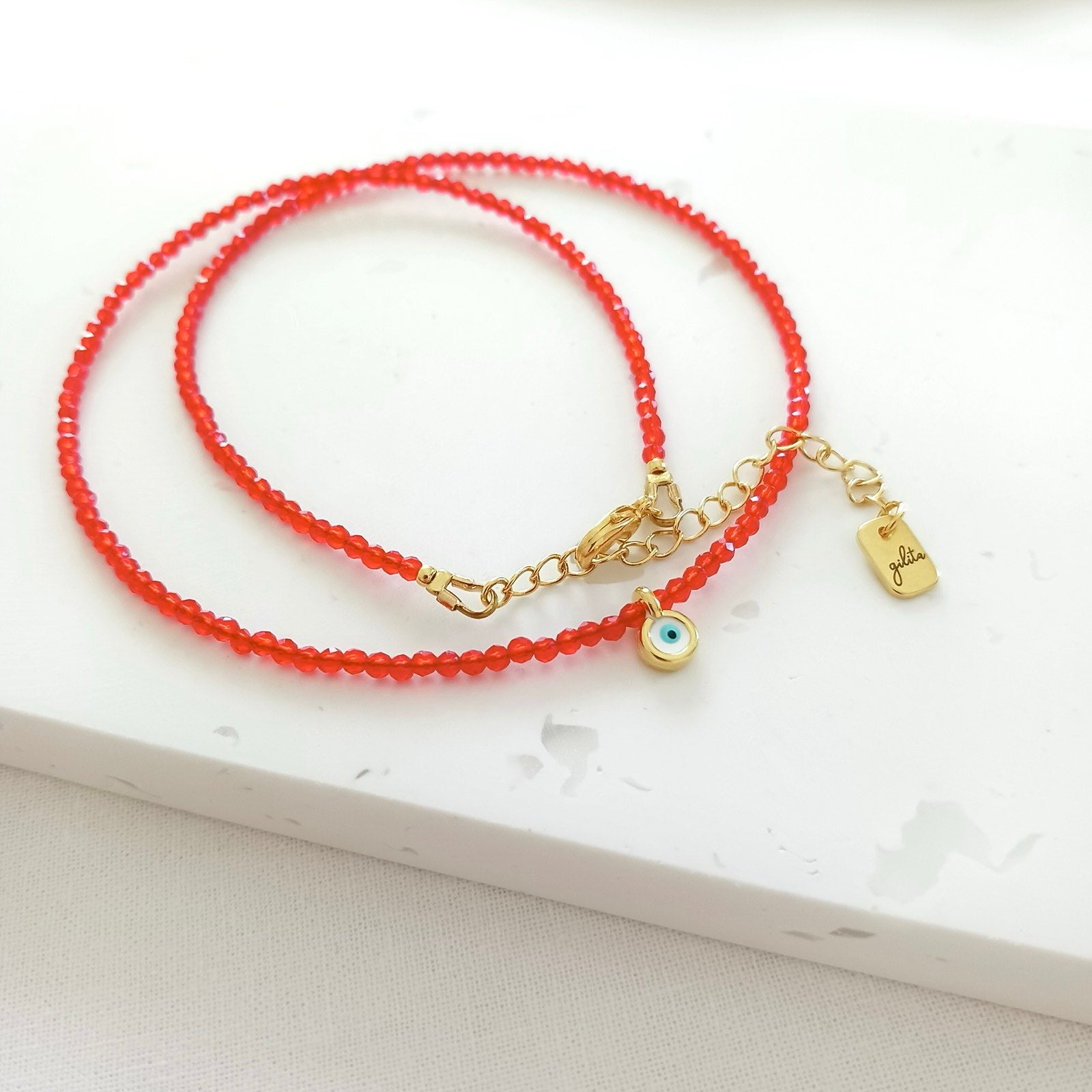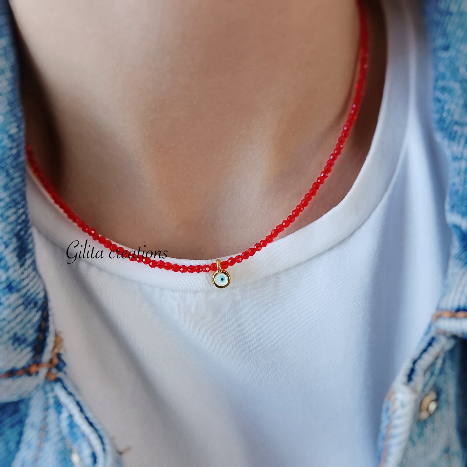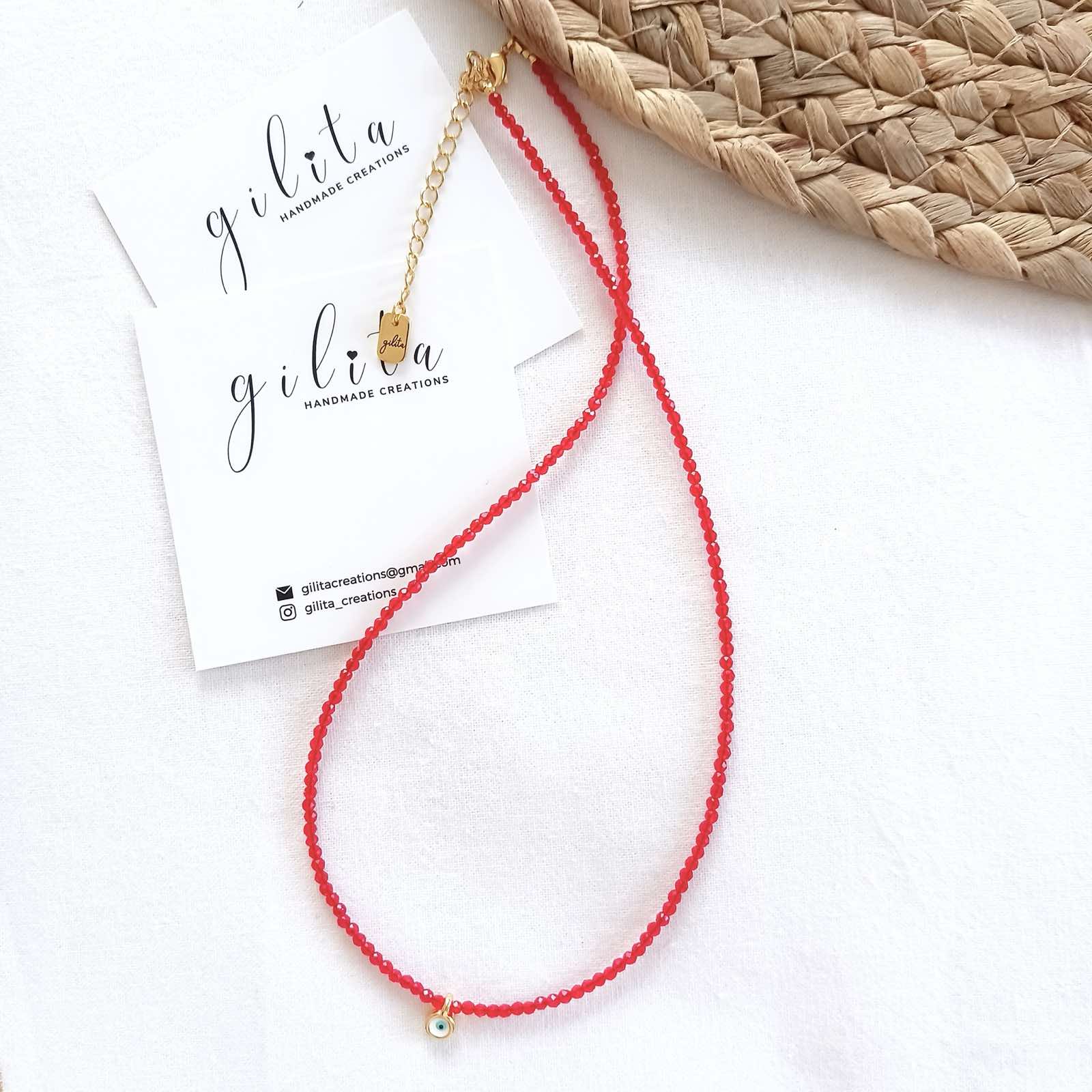 Κολιέ με κόκκινα κρυσταλλάκια και ματάκι